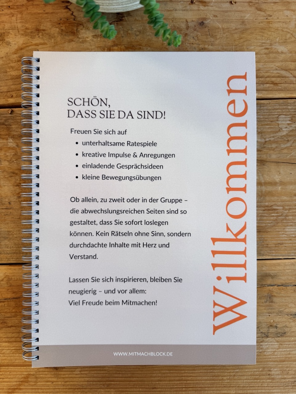 Ob beim Frühstück, im Café oder am Abend: Der Mitmachblock für Senioren sorgt für Abwechslung, Inspiration und gute Gespräche – ideal auch zum gemeinsamen Mitmachen mit Partner*in, Familie oder Freund*innen oder einfach für eine Abwechslung ganz für sich selbst.