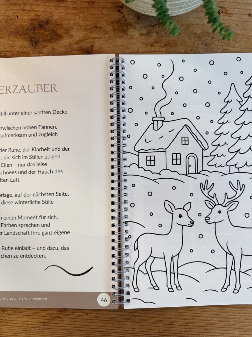Die stabile Spiralbindung hält den Block flach auf dem Tisch, das große, klare Layout erleichtert das Schreiben, Rätseln oder gemeinsames Anschauen